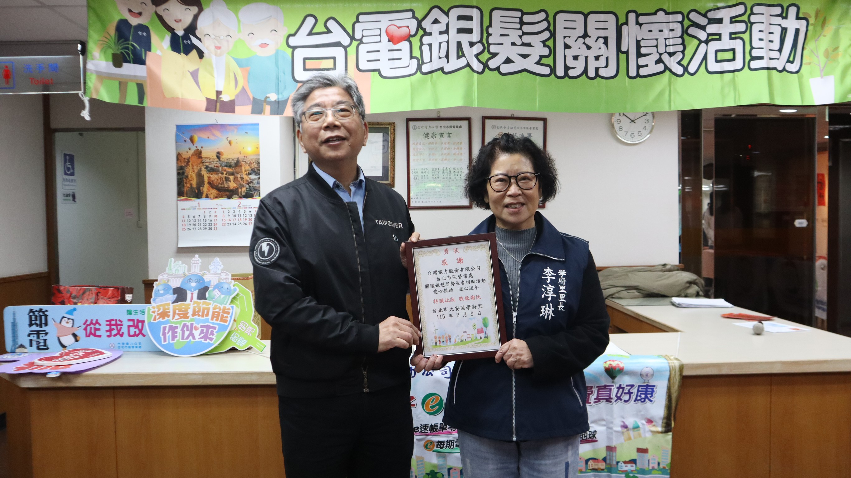 台電台北市區營業處舉辦「迎春接福揮毫送春聯」 歡喜迎接丙午金馬年 2026-02-09 農曆新年將至,台電台北市區營業處於本(2)月9日上午在營業大廳舉辦「迎春接福揮毫送春聯」活動,特邀「傑閣書會」副會長胡瓊珠、姜六郎、王文海等書法名家現場揮毫寫春聯,贈與當日臨櫃洽公用戶及本區里民索取,當場即興說出吉祥話,還可獲得客製化春聯,提前感受濃厚的年節氣氛。 活動由處長龔良智領軍,邀請大安區副區長周之雅、學府里里長李淳琳、台電工會第三分會常務理事王惠儀及三位書法名家共同開筆揭開序幕,齊力寫下新春賀詞「新春開運神馬都行」,象徵在新的一年裡,台電將持續提供穩定電力,與民眾一同迎接丙午金馬年。 龔處長表示,台電北市區處長期深耕鄰里,舉辦揮毫送春聯活動除了發揚傳統文化,更希望能親手傳遞台電的新春祝福。他強調,本次活動亦落實企業社會責任,結合敦親睦鄰精神,針對轄區內弱勢里民發放慰問金,期盼在歲末寒冬之際盡一份心力,落實公益關懷。 除了翰墨飄香,現場亦設置業務推廣攤位,積極宣導「時間電價」概念,協助用戶智慧用電以節省電費;同時引導民眾下載「台電APP」綁定電號及申辦電子帳單,推動數位服務減碳生活。參與推廣活動的民眾,現場均獲贈精美小禮,活動在墨香與歡笑聲中圓滿完成。 台灣電力公司 台北市區營業處 發言人:業務副處長 曾陳發 行動/0937-521-785 聯絡人:業務經理 杜雪芬 電話/02-23788111轉5100 行動/0901-134-368 台電台北市區營業處龔良智處長(右四)與貴賓共同開筆,寫下「新春開運神馬都行」迎接金馬年 處長龔良智(右)邀請書法名家胡瓊珠(左)現場揮毫,贈送客製化春聯為民眾祈福 。 台電台北市區營業處舉辦銀髮關懷活動,與里民互動並宣導節電與數位服務 。 處長龔良智(左)致贈弱勢慰問金,由學府里里長李淳琳(右)代表接受並回贈感謝狀 。 更新日期:2026-02-09 瀏覽人次:73 常用服務 電力小詞典:相關停電定義說明 1計畫性工作停電 為強化系統韌性或因設備老舊定期更換檢修設備需要,並確保施工人員工作安全及設備而排定的停電,屬計劃性的工作停電,與電源不足完全無關。 2限電 1緊急限電 遇系統突發事故,導致電源不足或設備超過負荷、電壓嚴重偏低時,為顧及電力系統安全,需立即實施之限電措施。 2計畫性限電 前一日預估隔日電能不足,執行計畫性限電用以確保系統安全。 3事故停電 偶發性因天災外力或設備問題故障,所以引起的局部設備停電事故。